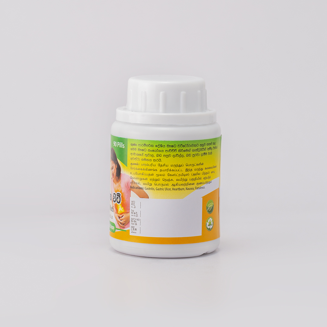 පාරම්පරික දේශීය ඖෂධ වට්ටෝරුකට අනුව සකස් කල මෙම ඖෂධ සංයෝගය පාවිච්චි කිරීමෙන් ගැස්ට්රයිටිස් (අම්ල පිත්ත), ආමාශයේ තුවාල, බඩ පපුව දැවිල්ල, බඩ පුරවා දැමීම වැනි අවස්ථා සමනය කරයි.