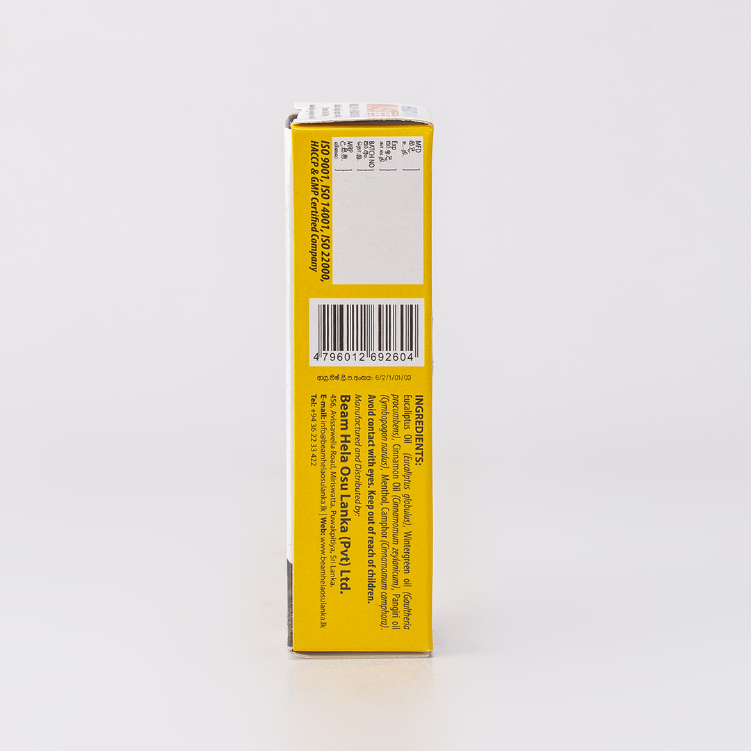 පාවිච්චි කල යුතු ආකාරය :- හිස දෙපස නලල් ප්රදේශයේ ආලේප කර මෘදු ලෙස මද වේලාවක් ඇගිලි තුඩු වලින් සම්බාහනය කරන්න. බාහිර භාවිතය සඳහා පමණි.