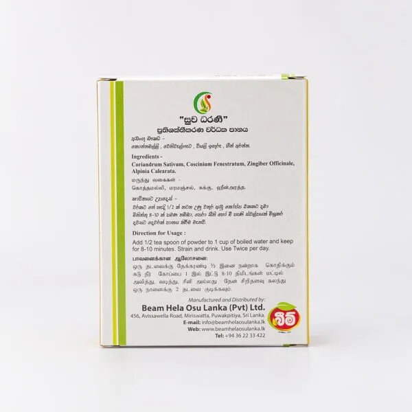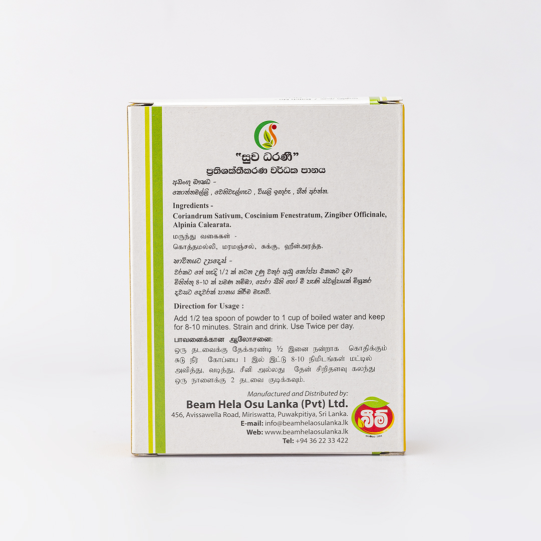 ආයුර්වේද දෙපාර්තමේන්තුවේ අනුමැතිය සහිතව “කොවිඞ් 19” උවදුර උදෙසාම දේශිය පුස්කොල පොත් සහ පුරාණ ආයුර්වේද වට්ටෝරු පරිශීලනය කිරීමෙන් සැකසුනු ප්රතිශක්තීකරණය ඉහල නංවන පානයකි.