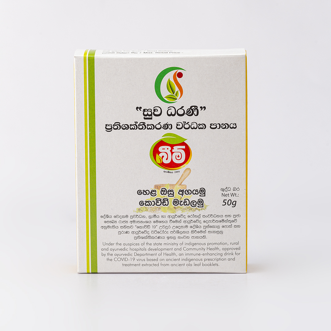 ஆயுர்வேத திணைக்களத்தின் ஒப்புதலுடன், பழங்கால ஆயுர்வேத ஓலைச்சுவடிகளை கொண்டு எடுக்கப்பட்ட குறிப்புகளைப் பயன்படுத்தி “கோவிட்-19” அச்சுறுத்தலுக்காக தயாரிக்கப்பட்ட நோய் எதிர்ப்பு சக்தியை அதிகரிக்கும் பானமாகும்.