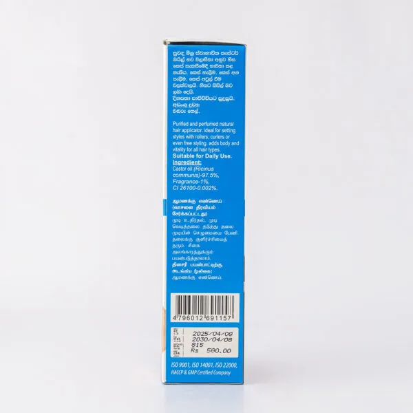 This is a natural hair applicator purified and perfumed ideal for setting styles with rollers, curlers or even free styling. Adds body and vitality on all hair types.