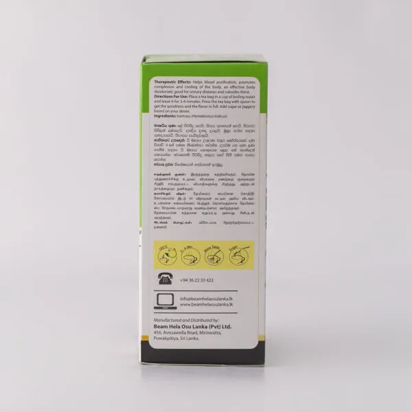 This serves as a supplement for tea and helps blood purification, improve body complexion, cooling of the body. Helps prevent body odor, excellent for urinary diseases and subsides thirst.