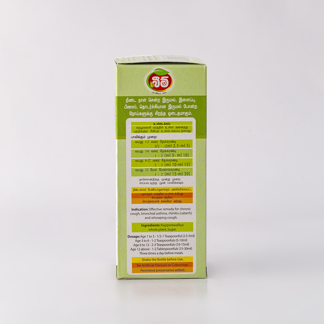 நீண்ட நாள் சென்ற இருமல், இளைப்பு, பீணஸ், தொடர்ச்சியான இருமல் நோய்களுக்கும் குழந்தைகளின் இருமல் நிலைகளுக்கும் சிறந்த நிவாரணி