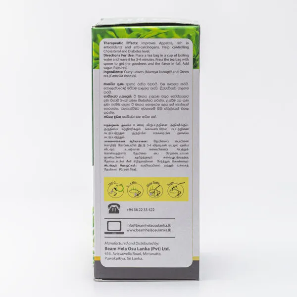 Tags: antioxidant, appetite, Ayurveda, Blood Purification, BloodSugar, cholesterol, Curry Leaves, Daily Drink, Detox, Diabetes, drink, Fat Reduction, Glucose, Green Tea, Health, Healthy Living, Healthy Tea, Heart Health, Herbal, Herbal Blend, herbal tea, herbs, Immune Boost, karapincha, Liver Health, metabolism, Murraya, Natural, nutrition, organic, Remedy, Sugar Control, Supplement, tea, traditional, Wellness Brand: Beam