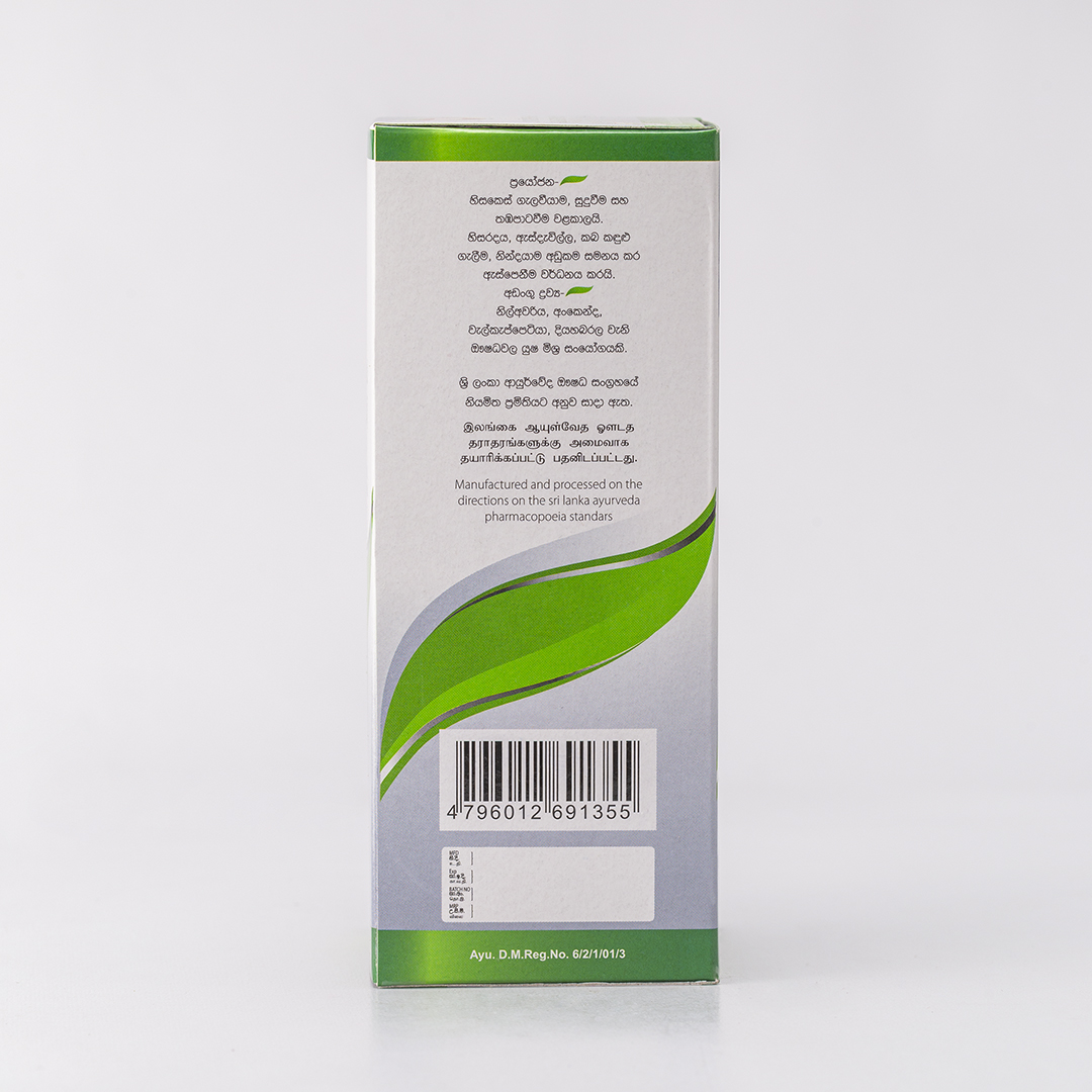 Prevents hair fall, premature greying, and dullness. Relieves headache, eye irritation, watery eyes, and insomnia while improving eyesight.