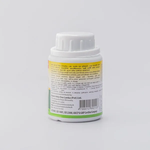 Kiratha (Andrographis paniculata), Long pepper (Piper longum), Ginger (Zingiber officinale), Pepper (Piper nigrum), Arualu (Terminalia chebula), Bedda nuts (Terminalia bellirica), Indian gooseberry (Phyllanthus emblica), Liquorice (Glycyrrhiza glabra), Nutmeg (Myristica fragrans), Clove (Syzygium aromaticum), Cinnamon (Cinnamomum zeylanicum), Wild eggplant (Solanum xanthocarpum), Calumba wood (Coscinium fenestratum), Turmeric (Curcuma longa), Ashwagandha (Withania somnifera) and etc.