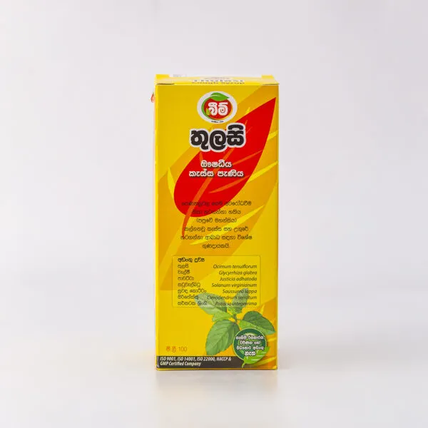 Holy Basil/Thulasi (Ocimum tenuiflorum), Liqourice/ Welmee (Glycyarahiza glabra), Pawatta (Justicia adhatoda), Wild eggplant (Solanum virginianum), Suwanda Kottan (Terminalia catappa), Siritekku (Clerodendrum indicum), Ginger (Zingiber officinale) and Karkataka Sringi.