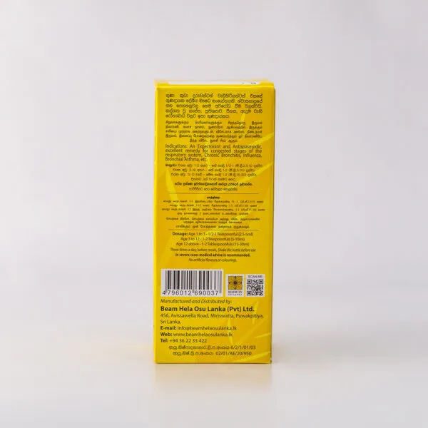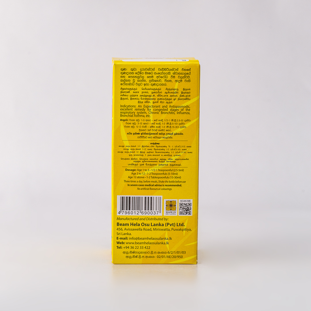 சுவாசநாளங்கள் மற்றும் நுரையீரல் சளி அதிகரிப்பதனை தடுக்கும், நீண்டநாள் இருமல், அஸ்மா, பீணஸ், இளைப்பு போன்ற நோய்களுக்கு மிகவும் சிறந்தது. இரவு நேரங்களில் ஏற்படும் இருமலுக்கு விசேடமானது.